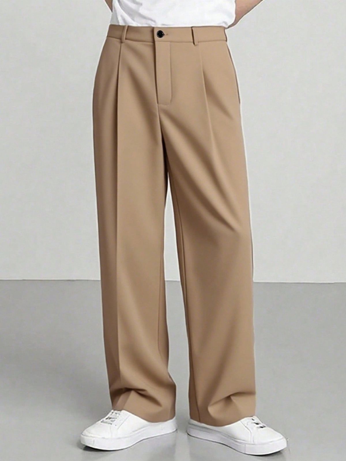 Elevate your everyday wardrobe with these beige wide-leg tailored trousers, designed for modern minimalists who value comfort and sharp structure. Featuring a high-waist silhouette, front pleats, and a smooth drape, these trousers offer a refined look that transitions effortlessly from smart-casual to formal settings.