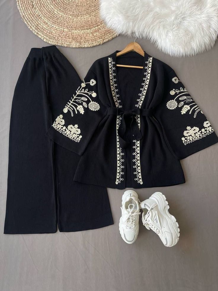 Upgrade your wardrobe with this elegant Embroidered Jacket & Palazzo Co-Ord Set for Women. The black open-front jacket-style top is beautifully highlighted with white floral embroidery on the sleeves and borders, paired with matching wide-leg palazzo pants. A perfect blend of comfort and contemporary ethnic style, this outfit works effortlessly for casual outings, brunches, and evening get-togethers.